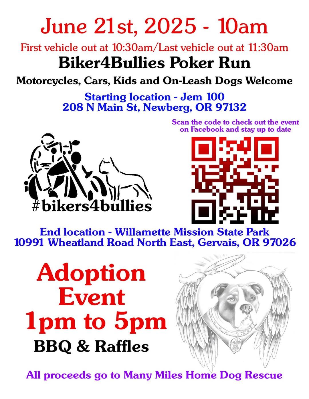 Biker4Bullies Poker Run The Biker4Bullies Poker Run is Saturday at 10am at Jem 100, 208 North Main Street. + Add to Google Calendar + iCal / Outlook export Tags: Motorcycle Event, Newburg Date Jun 21 2025 Expired! Time 10:00 am Location Jem 100 - Newburg 208 North Main Street, Newburg, OR 97132 Category Motorcycle Events Share this event Featured Upcoming Event: January 30th – February 1stPLEASE SUPPORT OUR SPONSORS!!The Official Transporter of Oregon Car CultureGET FAST! STAY LEGAL!