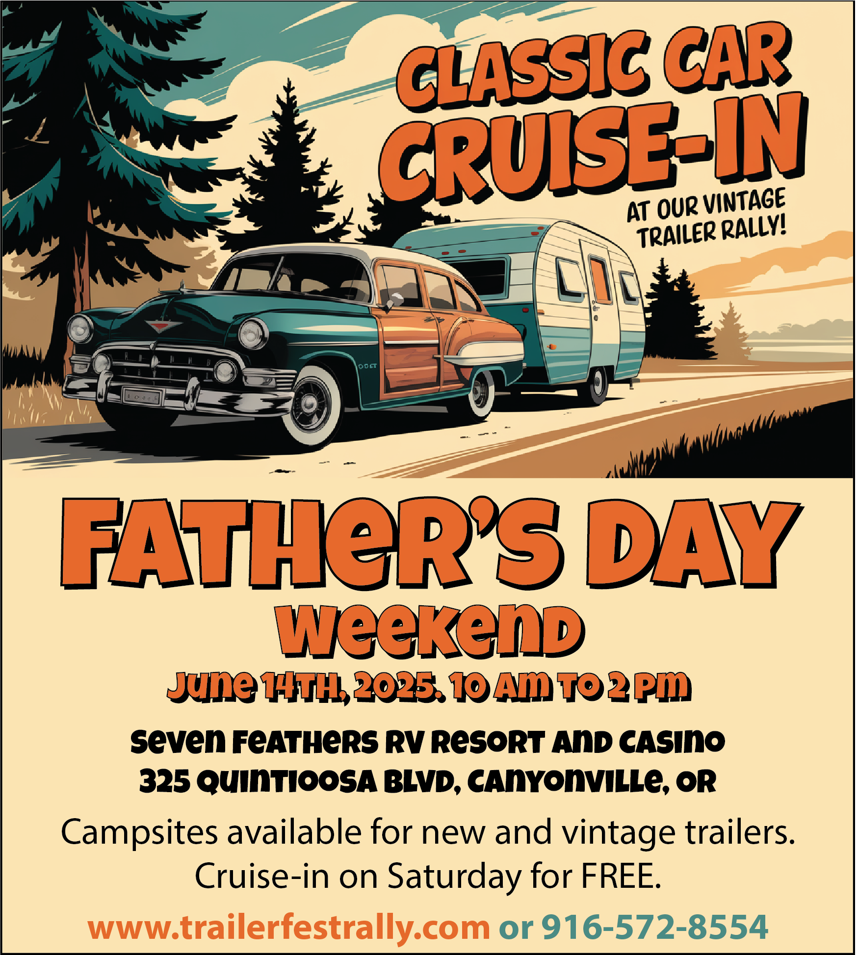 The Father’s Day Vintage Trailer Rally is Saturday from 10am to 2pm at Seven Feathers RV Resort & Casino, 325 Quintioosa Boulevard.